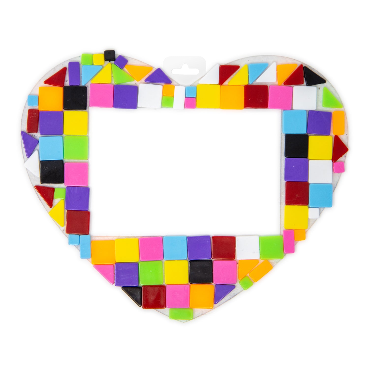 Includes: Adhesive heart frame cutout, mosaics, hang tab